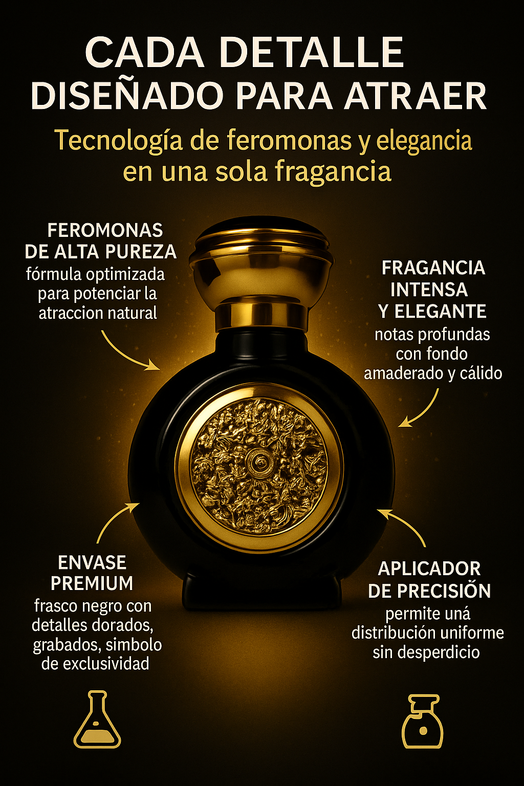 Nuestro perfume está formulado con una mezcla única de feromonas, que son producidas por nuestro cuerpo y que desempeñan un papel importante en la atracción sexual.
