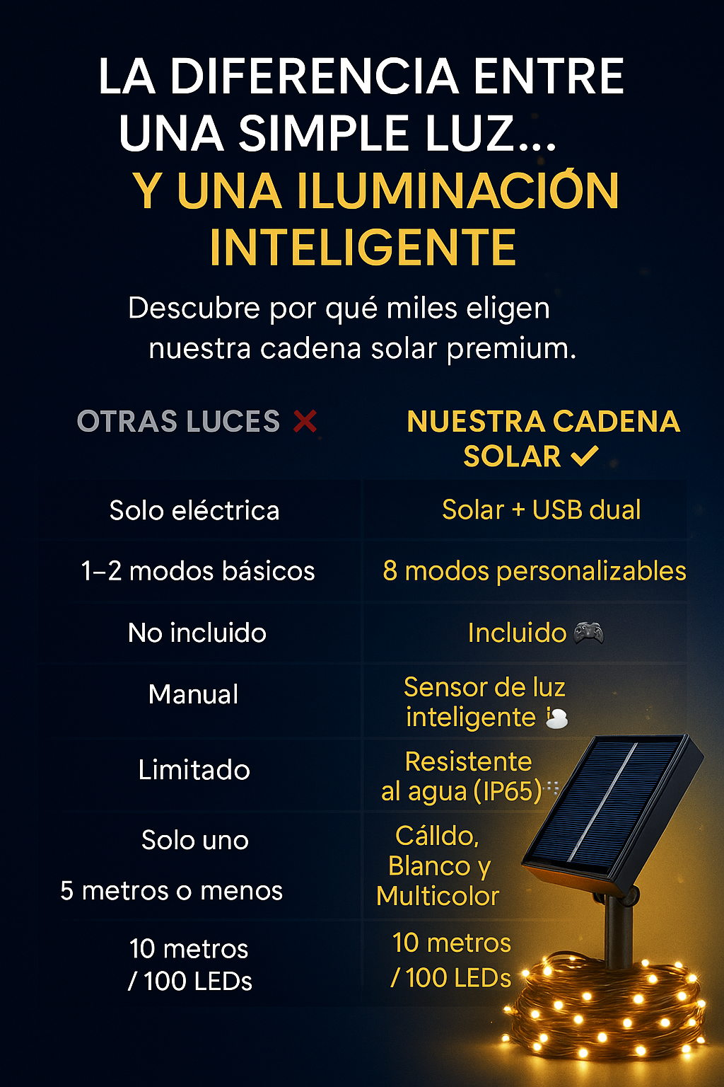 -La luz está diseñada para uso en exteriores solo en un lugar abierto para recibir luz solar directa